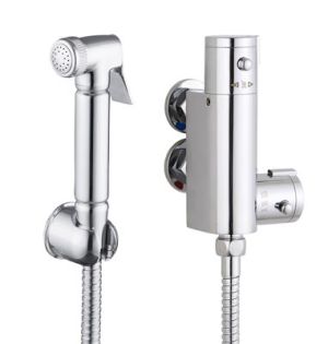 b'Mini Chrome Douche Head (with outlet and tap)'